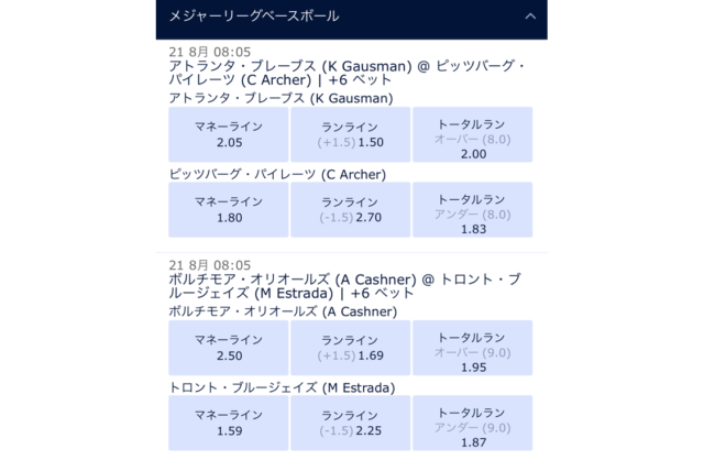 - 基本的な野球ベッティングについて(勝敗など)