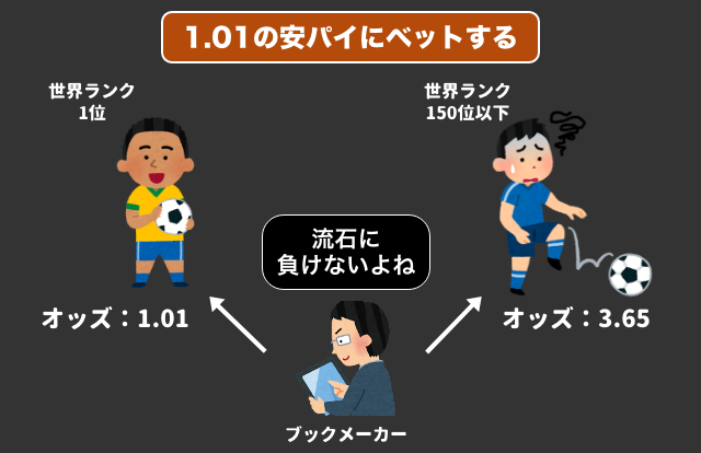 1.01ベットは、明らかに実力差の開きがあるチーム同士での試合に適用されるオッズにベットすることです。