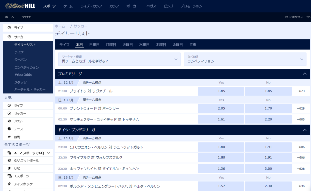 例えばサッカーにベットする場合、ブックメーカーのサイトからサッカーの項目を選び、試合の一覧を表示させてください。