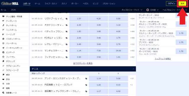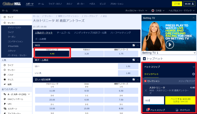 『ウィリアムヒルカジノ』を例にブックメーカーで遊ぶ手順を詳しく解説していきます。