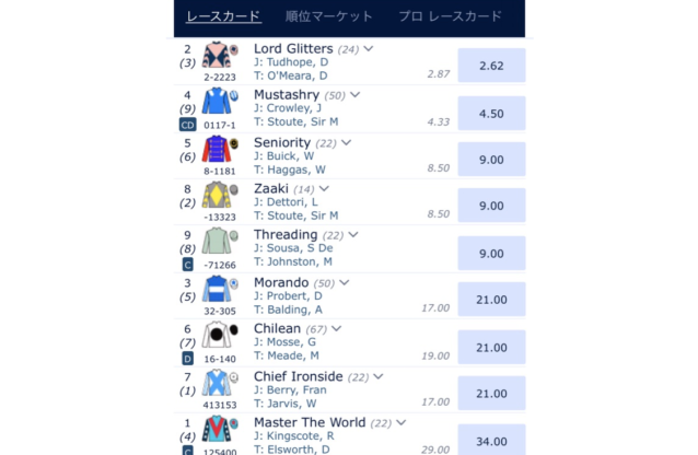 ブックメーカーの競馬でベット可能なオッズ