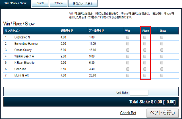 「Place Only 2」と同じように、1〜3着に入った場合は順位に関わらず、一定の賞金を得ることができます。