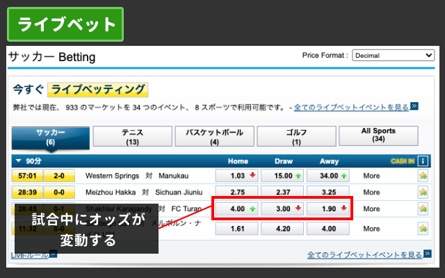 ライブベットを始め、常にオッズは変動すると覚えておきましょう。