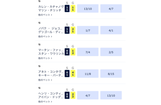 スコア予想もブックメーカーのテニスではメジャーなオッズの一つです。