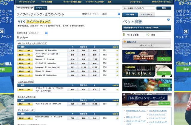 ベッティング可能なオッズにはどんなタイプがあるのかウィリアムヒルカジノのブックメーカーのスクショを使用して説明します。