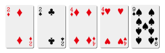 ![]() | 【フォーカード】 同じ数字のカードが4枚揃うと完成する。別名『クワッズ』 | 0.024% |