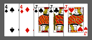 同じ数字4枚の組み合わせ+それ以外の数字で作る役は「フォーカード」です。海外のカジノでは「フォー・オブ・ア・カインド」や「クワッズ」と呼ばれます。