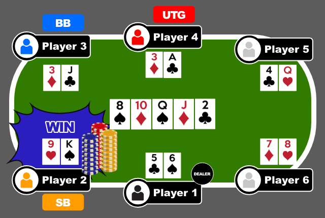勝者は一番強い役を持っているプレイヤーで、ポットに集まったチップはすべて勝者に受け渡されます。