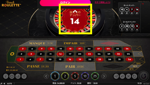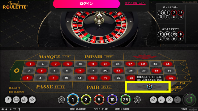 なお、「アンプリゾン」「ラパルタージュ」ともに、賭け金が返金されるのは、配当2倍(赤黒、偶数奇数、ローハイベット)の時のみです。