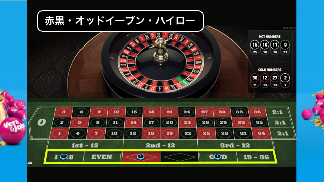 赤黒賭け / オッドイーブン(偶数or奇数) / ハイロー賭け