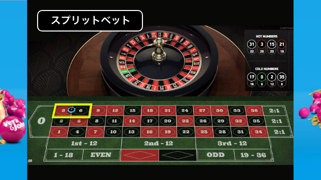 今回紹介する必勝法は赤黒賭けやハイロー賭けよりも確率が高く、ストレートベットよりも配当が高い下記の2つです。