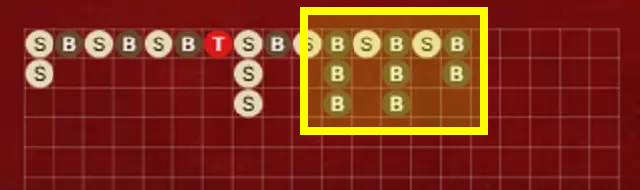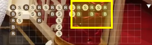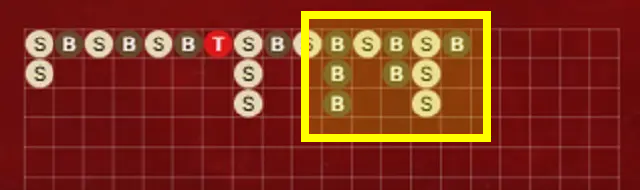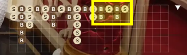 Bが2回きた後にSがくる、という流れが続けて出ていますね。罫線から見て取れる流れがこの後も続くとなると、次はBが来るのではと予想できます。