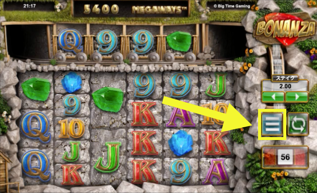 まず、ボナンザを起動したら好みのベット額を設定します。ベット額は、プレイ画面右端にある『ステイク』から設定可能です