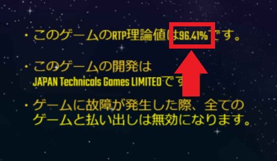 ドリーム・オブ・ゴールドの還元率は96.41%に設定されています。還元率は、配当表と同様にハンバーガーメニューの『i』アイコンから確認することができます。