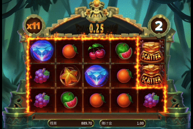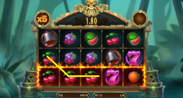 - フルーツ・インフェルノ(Fruit Inferno)は古代遺跡がモチーフのスロット