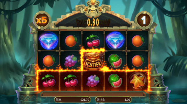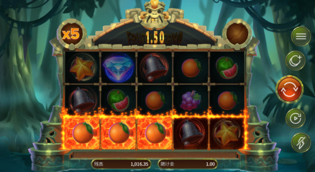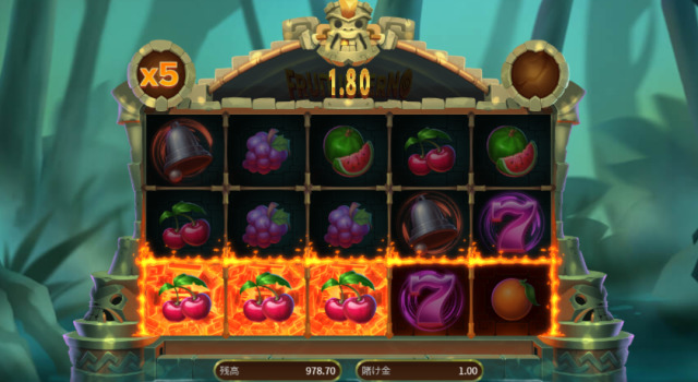 フルーツ・インフェルノ(Fruit Inferno)は、ジャングルの中にある古代遺跡がモチーフになっているスロットで、ベラジョンカジノとインターカジノが独占配信している機種です。