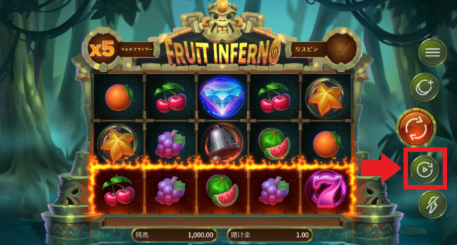 フルーツ・インフェルノでは、オートスピンも設定できます。