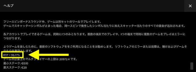 また、還元率も95.77%で一定となっているため、プレイを続ければ続けるだけ戻ってくる金額の割合も95.77%に収束していきます。