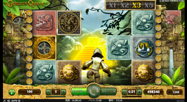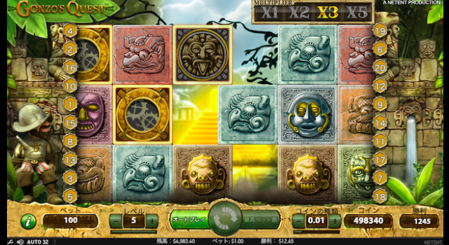 ゴンゾーズクエスト(Gonzo’s Quest)は、オンラインカジノで遊べる人気のビデオスロットの1つです。