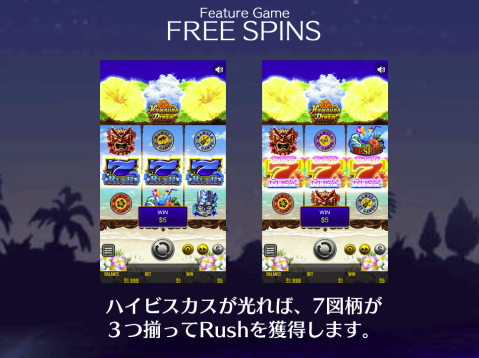 なおラッシュ終了後は、ハイビスカッシュへモードが切り替わり、フリースピンが継続されます。