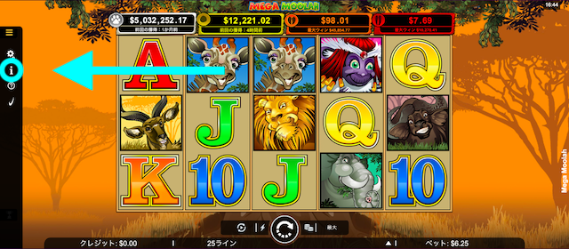 なお、メガムーラの各配当は画面左端の『i』アイコンから確認できます。