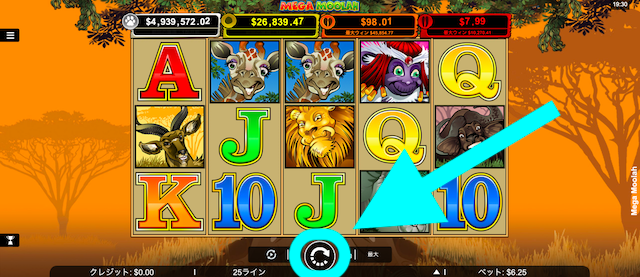 ベット額を設定したら、スピンボタンをクリックしてゲーム開始です。