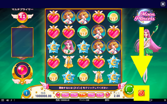 ここからはムーンプリンセスの実際のプレイ画面を交えながら遊び方を解説していきます。