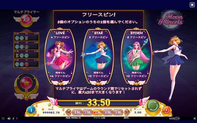 - ムーンプリンセス(Moon Princess)は3人の美少女戦士が配当成立のサポートをしてくれる