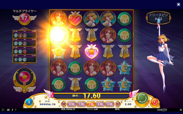 また、なんと言っても日本人がよく知る美少女戦士に似たキャラクターの演出や、配当成立を手助けしてくれるフィーチャーは必見です。