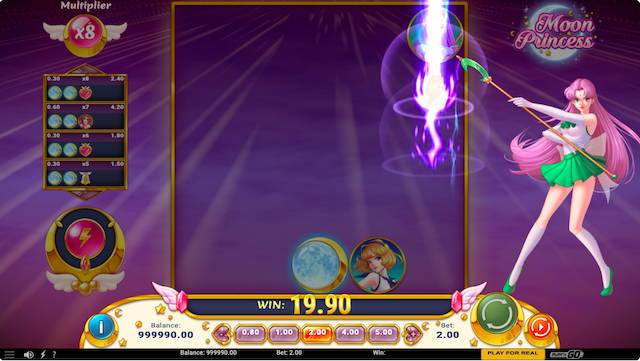 マルチプライヤーとは、配当成立した後の賞金額を何倍にも乗算してくれる機能のことで、ムーンプリンセスでは最大20倍まで増加します。