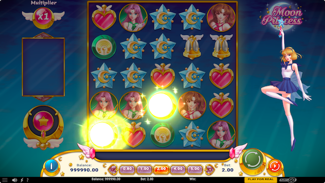 - ムーンプリンセス(Moon Princess)は1スピン中に全てのシンボル消滅でフリースピン突入