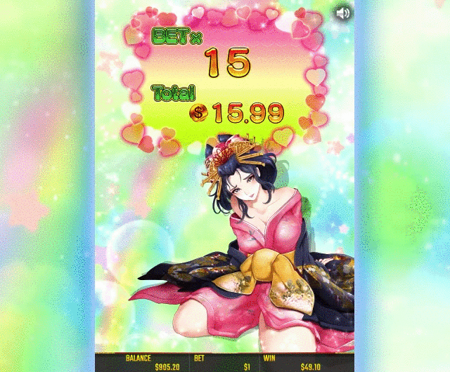 この花魁にはキャラクターボイスや目の瞬きなど、アニメーションも発生するため、スピン中も目が離せません。