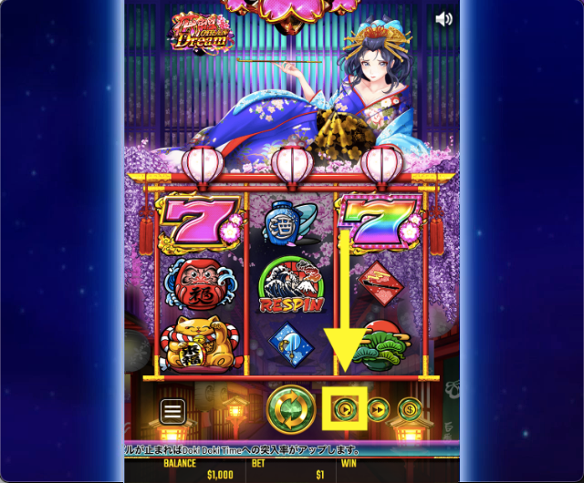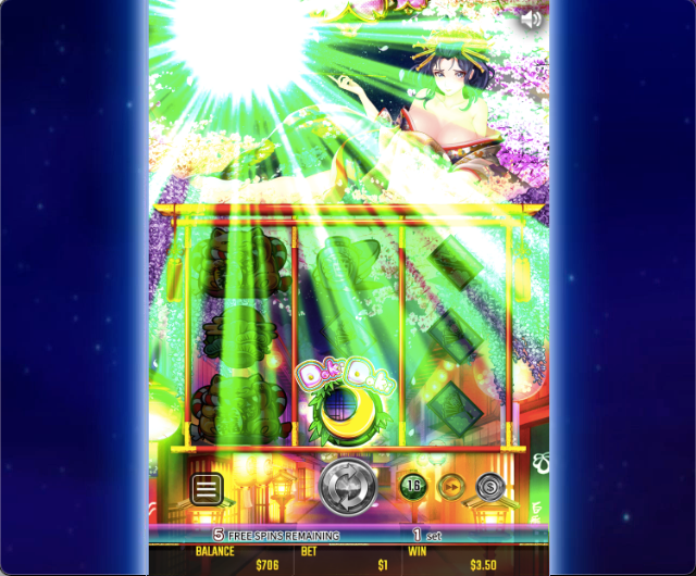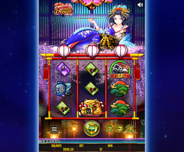 - 花魁ドリーム(oiran dream)は、リスピン・フリースピンで少しずつ着物が肌けていく