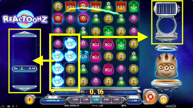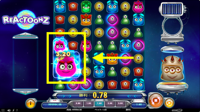 リアクトゥーンズ(Reactoonz)の当たり演出