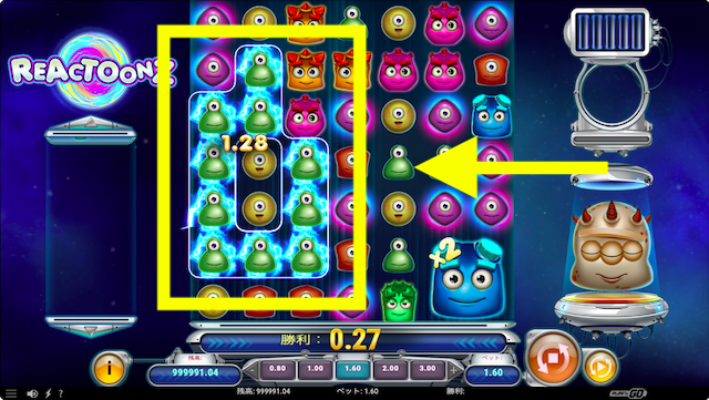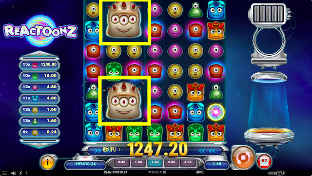 - リアクトゥーンズ(Reactoonz)の当たり演出は巨大ワイルドが出現