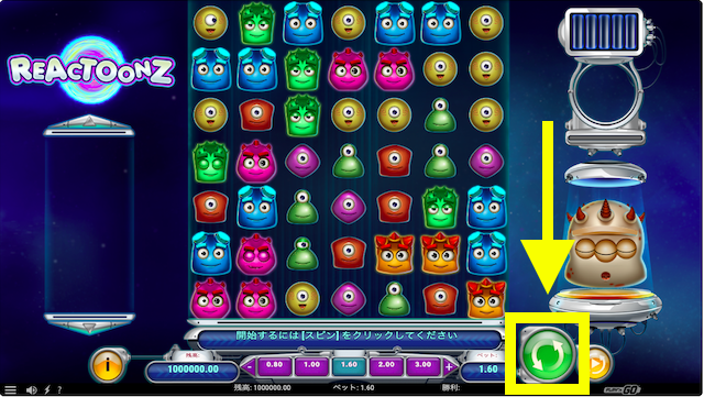 設定が済んだら、ゲーム画面右下にあるスピンボタンを押してゲーム開始です。