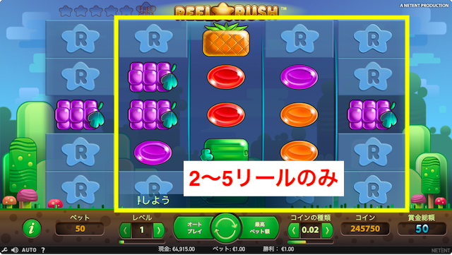 リール・ラッシュのシンボルは、キャンディやフルーツのデザインとなっています。