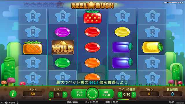 リール・ラッシュは、オンラインカジノの大手ソフトウェア会社『NETENT』社によって2013年にリリースされたビデオスロットです。