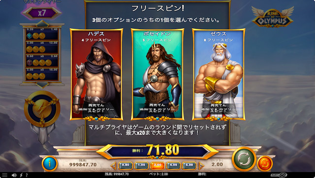 3人のオリンパス神が変わる変わる技を発動させたり、連鎖によってマルチプライヤー演出するなど、豊富なシステムが搭載されていて、波に乗れば高額賞金を獲得することもできます。