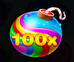 スイートボナンザベラジョンでは、フリースピン中のみマルチプライヤーが発生します。マルチプライヤーは、下記のようなレインボーの爆弾シンボルがリール上に出現すると加算される仕組みです。