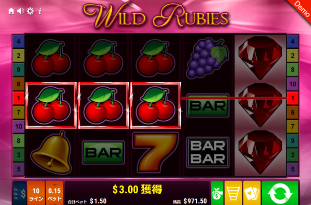 - ワイルド・ルビーズ(Wild Rubies)は昔ながらのレトロな雰囲気が特徴のスロット