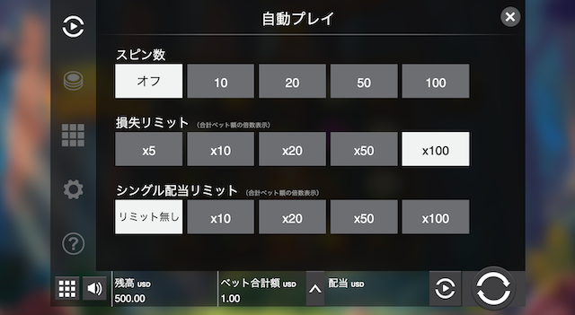 オートスピンではベット制限なども設定できるので、ターボモードなども駆使しながら手軽に遊んでみましょう。