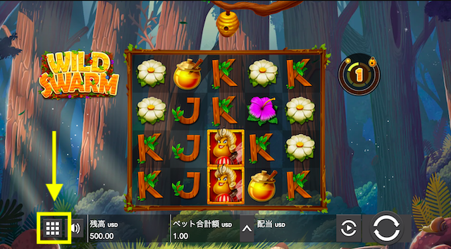 まずワイルド・スウォームを起動したら、画面最下部のベット合計額から好みのベット額を設定しましょう。