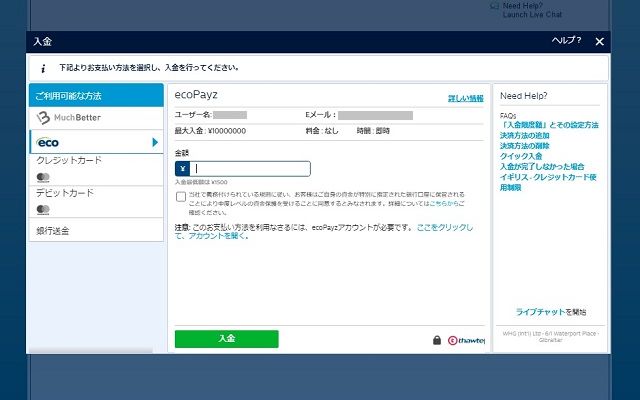 クレジットカードはすぐに入金できますが、出金先に選べないので注意してください。エコペイズは入出金どちらもできますし、他ブックメーカーでも使えるので、この機会にアカウント開設をオススメします。