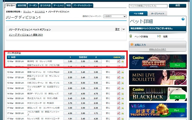 なお、解説では実際にスポーツベットができるウィリアムヒルスポーツカジノの画像を使用しました。