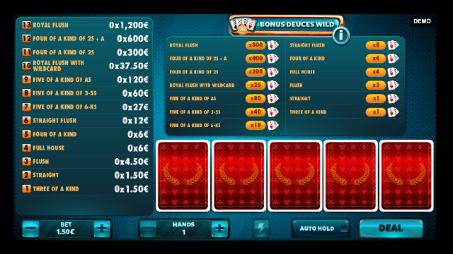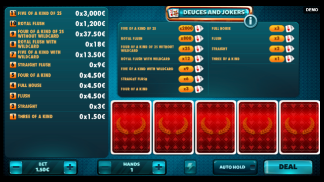 デュースワイルドとは、数字の『2』がワイルドカードとなるのが特徴的なビデオポーカーです。