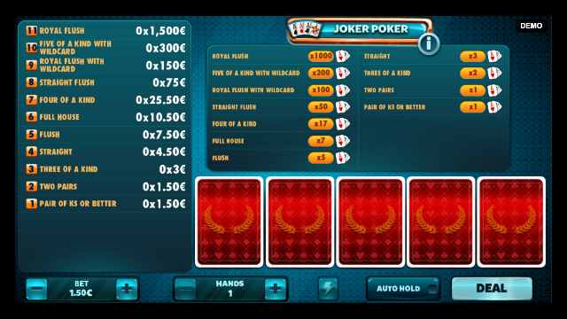 他のポーカー機種に比べて配当は成立しやすいためスリーカード以上から配当がつくのも特徴で、ワイルドカードで配当が成立した場合の賞金は若干低いですが、フルペイの最高額はジャックオアベター以上とも言われていて、攻略の楽しさも人気の秘密です。