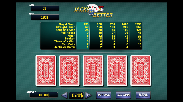 オンラインカジノによって配信されているビデオポーカーの種類は異なりますが、どのサイトでもスタンダードな「ジャックス・オア・ベター」が配信されています。