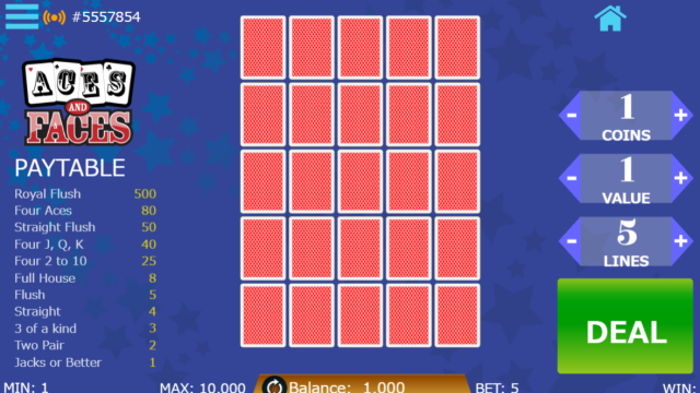 ビデオポーカーは、対人ポーカーとは違い役を揃えるだけで配当をもらうことができます。