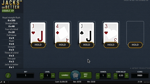 今回はベラジョンカジノで遊べる『JACKS OR BETTER』を例に出して説明していきます。